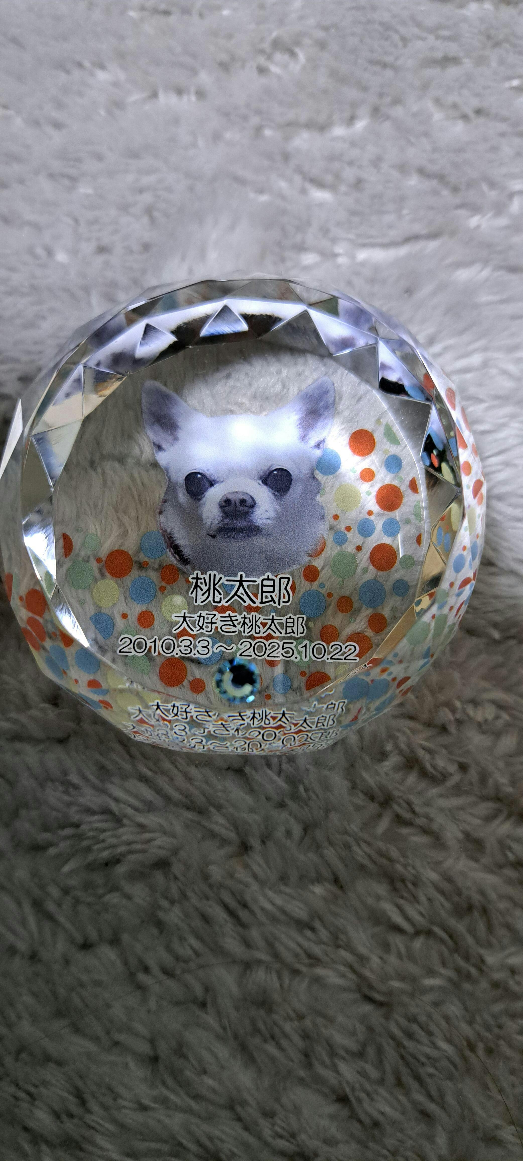 Pet Momentoのクリスタル位牌では、クリスタル内部に「うちの子」の想い出の写真を印刷加工することが可能です。