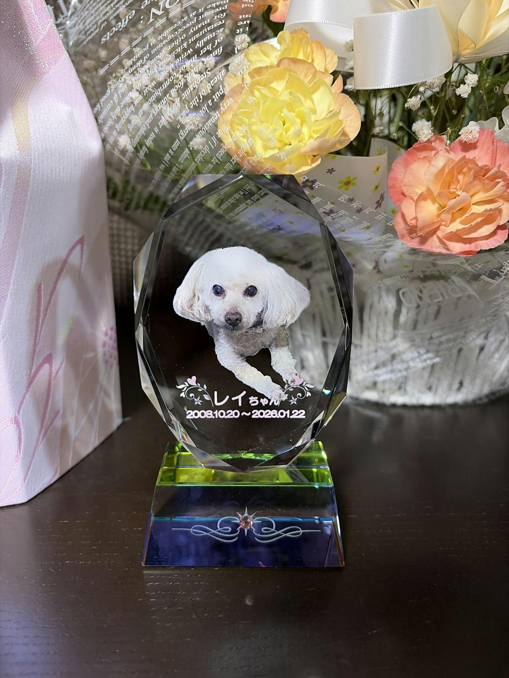 Pet Momentoのクリスタル位牌では、クリスタル内部に「うちの子」の想い出の写真を印刷加工することが可能です。