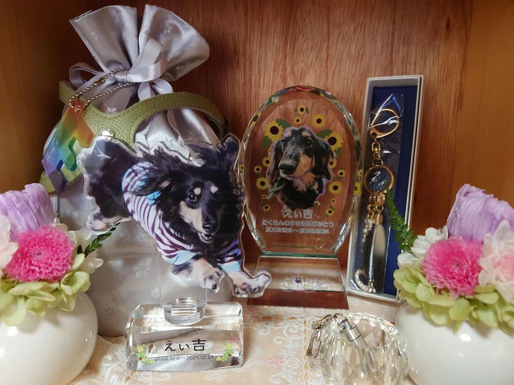 サイズは3種類。玄関やリビング、職場のデスクなど普段よく使う場所に置いておくことができ、大切な「うちの子」をいつでも側に感じられます。